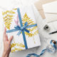 Wrapping paper printed with original watercolor faux gold fern leaves.