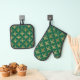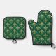 Gold fleur-de-lis seamless pattern on green oven mitt & pot holder set
