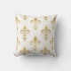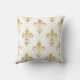 Gold fleur-de-lis seamless pattern on white throw pillow