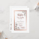 An elegant rose gold/copper bordered floral surprise 50th birthday dinner party invitation featuring warm gold floral foliage embellishments in the diagonal corners and burgundy text.