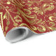 Gold Floral Damasks Pattern Red Background Wrapping Paper
