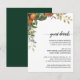 Pretty, elegant, modern and bohemian wedding guest details enclosure cards for your special occasion! The design matches with the rest of the Orange Leaf Foliage Collection. Watercolor orange fruit with dark and light green leaves leaf foliage side border frames the top of your wedding guest details enclosure cards details. Personalize with your desired details such as hotel accommodations, group codes, transportation, directions, welcome reception information, and your wedding website url.