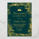 Gold floral emerald green Tiara chic Quinceanera Foil Invitation