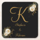 Gold Floral On Black Wedding Gift Monogram Square Paper Coaster
