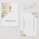 Elegant gold tones floral lace ornament showing partial, over white customizable background color. Fully customizable double-sided business card template.