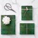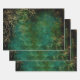 Gold Floral Outlines on Green Wrapping Paper Sheets