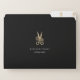 Chic file folder set features one white, one medium grey, and one black folder, each with a faux gold foil scissors illustration on the front, and two lines of custom text beneath. Folders open to reveal a matching pattern of faux gold scissors embellished with tiny flowers. Perfect for your hair salon or hairstyling business.