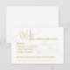The design features soft, illustrated blooms in warm gold tones arranged with an airy, organic layout. A graceful script font carries the main reply prompts, while clean supporting text keeps the card legible and polished. The overall aesthetic sits at the crossroads of elegant and playful — perfect for garden weddings, boho celebrations, rustic barn receptions, or any couple who loves floral romance with a lighthearted twist.