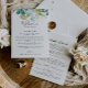 This gold floral tropical green wedding welcome letter is perfect for a destination wedding. The design features predominantly hand-painted watercolor green foliage coupled with gold flowers.