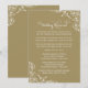 Plain white envelopes are included with paper invitations and will come to fit the invitation size you select. If you don’t need the envelopes, you may choose to not receive them by selecting the dropdown below "Envelopes" and choosing "None." If you’d like to have a design on your envelopes, you can browse all of these available envelopes to find the design that complements your Vintage Gold Scrolls Wedding Rehearsal And Dinner Invitation.
