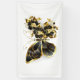 Gold flower butterfly with black jewelry orchid, decorated with gold leaves on white background.
