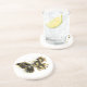 I'm not sure how much moisture these will soak up, haven't had a chance to try them out, but they look good and I like the cork backing. The printing is fine ~ and really looks cool with an artisan's hand made "Hurricane Martini" glass sitting on top of my painting (on the coaster) in my studio.