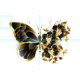 Gold flower butterfly with black jewelry orchid, decorated with gold leaves on white background.