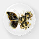 Gold flower butterfly with black jewelry orchid, decorated with gold leaves on white background.