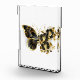 Gold flower butterfly with black jewelry orchid, decorated with gold leaves on white background.