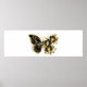 Gold flower butterfly with black jewelry orchid, decorated with gold leaves on white background.