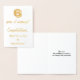 This gold foil wedding anniversary card design features a message like "6 years of marriage! Congratulations, Betty-Lou & Andrew!" on the front. The married couple’s names ("Betty-Lou & Andrew") can be changed to personalize the card. The inside features a customizable message like "May your 6th wedding anniversary be a happy and joyful one!". It could be given to a married couple who are celebrating their sixth wedding anniversary. [~Z0000048]