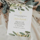 These elegant and stylish first Holy Communion invitations feature lovely green Mediterranean olive leaves with gold foil leaf accents, and a gold foil cross.