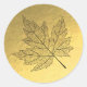 Simple and Elegant Classic Round Sticker with Gold Foil Background and black maple leaf image.