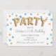 Simple and modern gold foil party balloon font with gold and blue foil confetti. Change wording for any party, birthday, graduation, retirement, bridal shower, bachelorette or retirement. This is faux foil, not real.