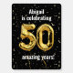 Gold foil balloons with gold confetti on black for 50th birthday party.