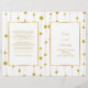 Gold foil beads modern wedding folded ceremony and party program featuring a pattern of string with gold foil balls with metallic shine that look like beads on rope on white background. Your text is in a golden frame. This elegant and stylish wedding template design is fully customizable and is perfect for a contemporary wedding. You will have to fold it in the center. Choose only this type of paper-value as it folds well. Note that THERE IS NOT REAL GOLD FOIL JUST PRINTED IMAGES.