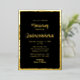 This luxe Quinceañera invitation features a gorgeous uneven frame. All party details in real foil make it elegant and sophisticated. Customizable black background adds to the design and complements the gold real foil details. Tailor it to your special day, making it unique to you.