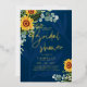GOLD FOIL Blue Sunflowers BRIDAL SHOWER QR Code Fo Invitation