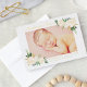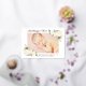 Announce your baby girl's arrival with this elegant real gold foil birth announcement card. Your newborn photo is beautifully framed by watercolor cream peony florals and lush greenery, with the baby's name in stunning gold foil script above birth details and a message from the proud parents. The back features a blush peach background with white horizontal stripes. All text and background colors are fully customizable to coordinate with your photo.