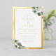 Gold Foil Border Green Leaves Elegant Wedding Foil Invitation