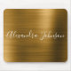 Faux Gold Metallic Foil Girly Office Business Mousepad with white lettered typography for the monogram signature. The Monogrammed Signature Gold Faux Foil Mouse pad can be customized with your name. Please contact the designer for customized matching items.