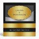Clean black and gold stripes with golden confetti where to customize the letters and present memories of wedding or family in binder.