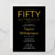 Gold Foil Fifty and Fabulous on Black White Script Invitation
