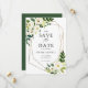 Announcement your wedding date with this white floral save the date announcement. It features watercolor illustrations of white roses and peonies, foliage accents and faux gold foil geometric frame. This whimsical white floral save the date card is perfect for spring and winter weddings. Personalize by adding names, date, venue and other event details.
