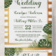 Gold Foil & Green Palm Leaf Beach Wedding All In One Invitation