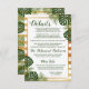 Celebrate in style with these tropical and very trendy wedding detail cards. The design features a chic striped white and gold foil effect background with tropical palm leaves and matching wording in a deep shade of green... stunning and simply perfect for any couple planning a destination or beach themed wedding celebration. This design is easy to personalize with your special event wording and your guests will be thrilled when they receive these fabulous cards. Matching wedding items can be found in the collection.