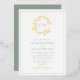 Gold Foil Leafy Sage Green Monogram Wedding Invitation