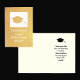 This Master's Degree graduation gold foil card features gold foil accents including a gold foil graduation cap. The words "Congratulations on your Master's Degree" appear below the cap and you can personalize the card with a name. Inside you will find a black graduation cap and words of congratulations for the Master's Degree recipient. Copyright Kathy Henis