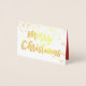 Gold Foil Merry Christmas Script Foto Hearts Snow Card