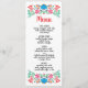 Mexican Fiesta wedding menu card with with decorative flowers and gold foil (faux) accents and back.