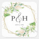 Gold Foil Monogram Geometric Greenery Wedding Square Sticker