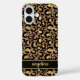 Customize this gold foil leopard print on a brown brushed metallic background iPhone 16 case with your your name in a trendy modern script font in a coordinating gold on black. It's so chic!