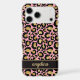 Customize this gold foil leopard print on a pink brushed metallic background iPhone 17 pro max case with your your name in a trendy modern script font in a coordinating gold on black. So chic!