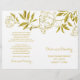 Gold foil peonies folded wedding ceremony and party program in booklet style displaying vintage wild peony flowers made of PRINTED AND NOT REAL gold foil with texture on white background, with the lovely script font Carolyna. Also you can change the white to any color of your choice. This elegant, classy and stylish yet modern floral design is a completely customizable template perfect for a contemporary or a traditional fall/autumn or winter wedding. NOTE THAT THERE ISN’T ANY REAL GOLD FOIL BUT JUST PRINTED IMAGES. Fold it in the center. Choose only this type of paper-value as it folds well.