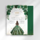Gold Foil Quinceañera Emerald Green Floral Invitation