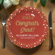 Gold Foil Script Confetti Congrats Grad Red Paper Plates
