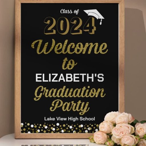 Black Gold Foil Confetti Script Graduation PartyDesigned by CaMi Designs