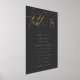 Simple and chic table number cards in soft ash black with gold foil lettering make an elegant statement at your wedding or event. Design features handwritten calligraphy script lettering with your table number in classic numerals, and individual guest names beneath, Single-sided print is intended to be placed in a tabletop frame as shown.
