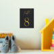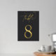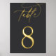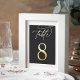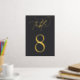 Simple and chic table number cards in soft ash black with gold foil lettering make an elegant statement at your wedding or event. Design features handwritten calligraphy script lettering with your table number in classic numerals. Single-sided print is intended to be placed in a tabletop frame as shown.