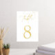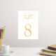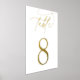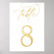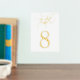 Simple and chic table number cards in white with gold foil lettering make an elegant statement at your wedding or event. Design features handwritten calligraphy script lettering with your table number in classic numerals. Single-sided print is intended to be placed in a tabletop frame as shown.